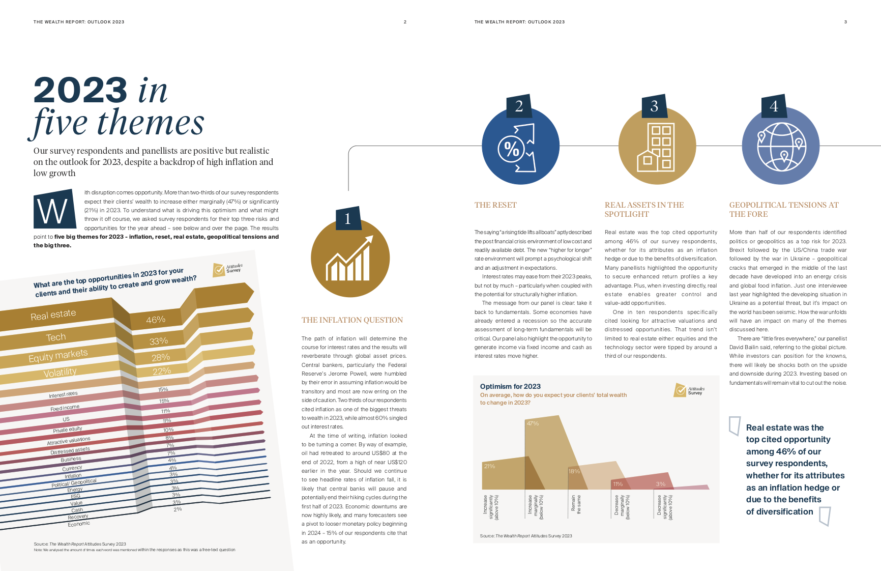 Using data from Douglas Elliiman. Knight Frank’s annual Attitudes Survey of more than 500 private bankers, wealth advisors and family offices combined with in-depth conversations with industry experts, we bring you our assessment of the key themes for wealth in 2023